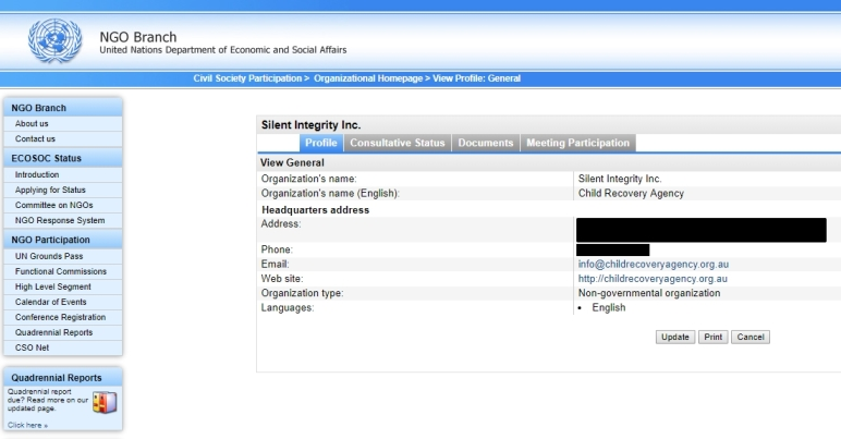 CRA information cannot be found on the public search record of the UN database, only current members can search for our details once logged in.
